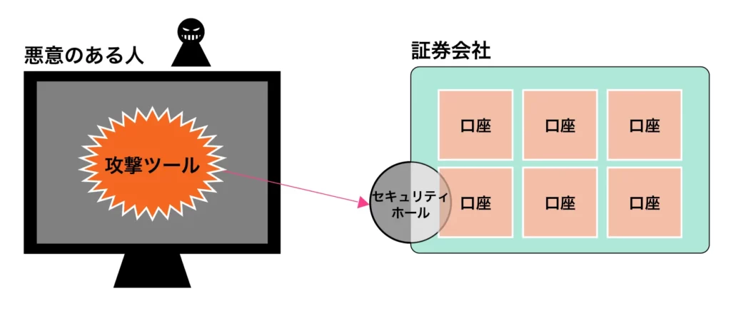証券会社自体が標的となり、ハッキングによって不正アクセスが行われた場合、顧客情報だけでなく資産そのものが危険に晒されるリスクがあります。